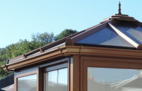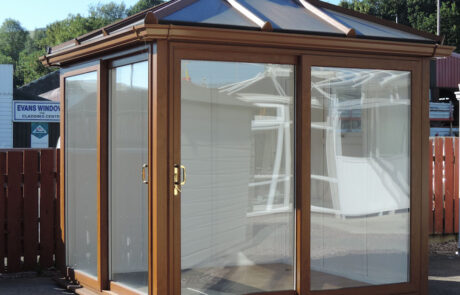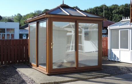 The Trannon pavilion is available in a choice of colours and woodgrain finishes. As standard the roof is glazed with 25mm Polycarbonate. A blue tinted double glazed glass roof or a solid roof is available at extra cost. Constructed in fully reinforced PVCu the trannon pavilion is low maintenance and thermally efficient and will not rot or require painting.